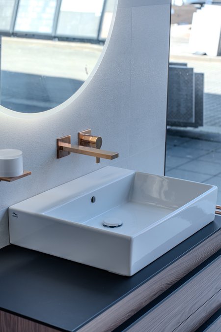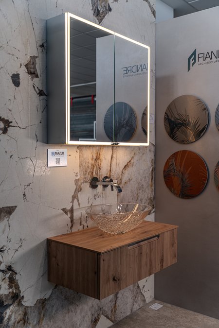 Auch wer auf kleinstem Raum nach ausgefallenen Lösungen mit Stil sucht, wird in der Badausstellung in Frankfurt fündig. Hersteller wie das französische Label Decotec zeigen eindrucksvoll wie sich Design, Modernität, neue Materialien und Farbharmonie bei Waschtischen und Co. vereinen können.