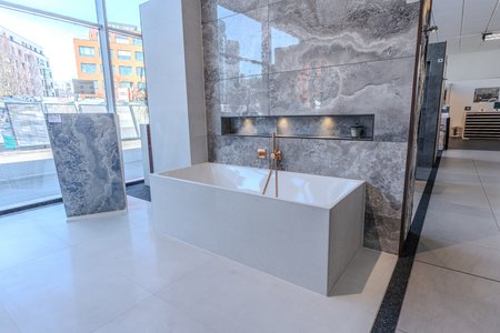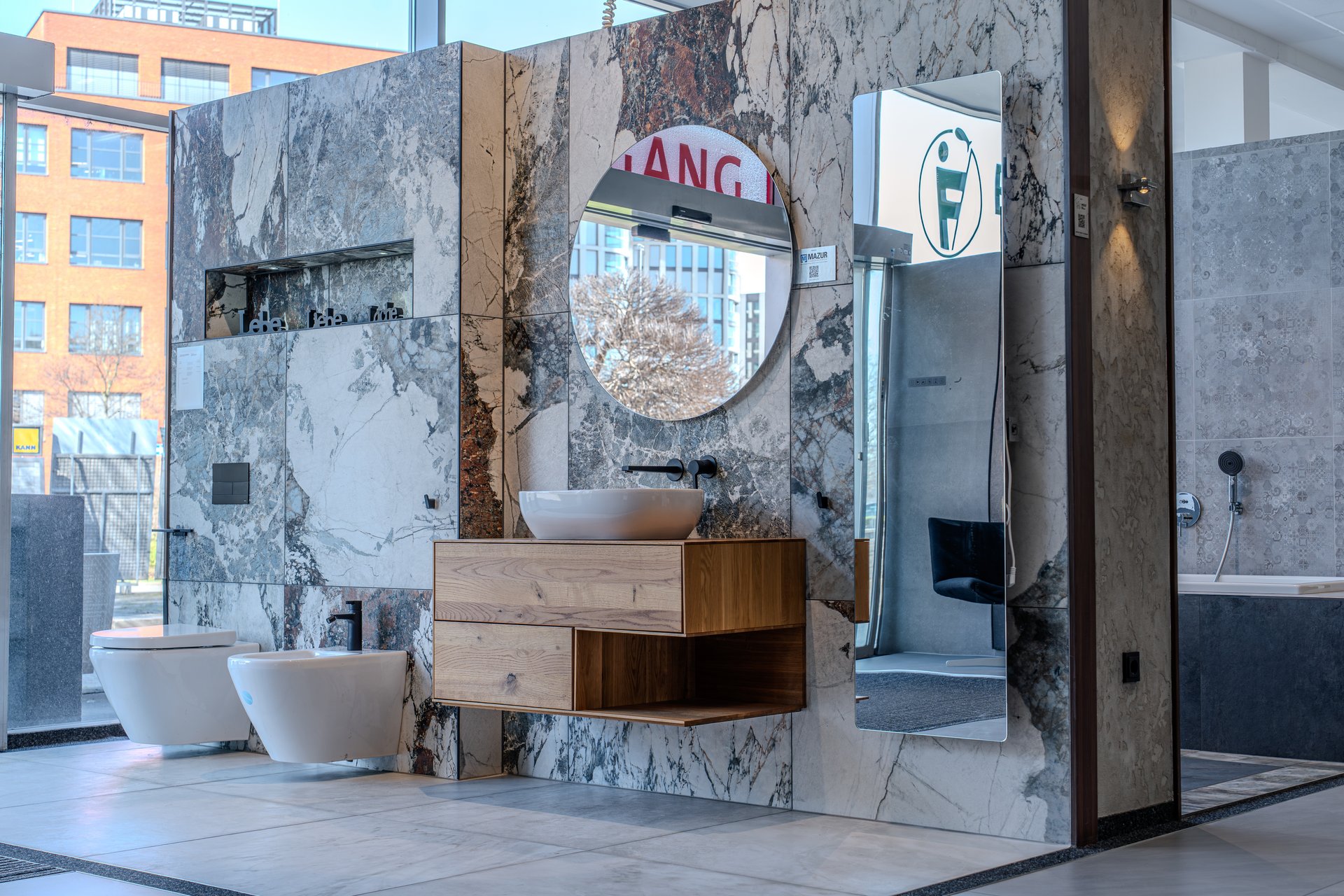 Fliesen sind nicht gleich Fliesen: Damit wir Ihnen als Kunden der Eisen-Fischer-Badstudios eine größtmögliche Auswahl an qualitativ hochwertigen Fliesen bieten können, arbeiten wir eng mit Raab Karcher und Keramundo zusammen. In der Eisen-Fischer-Bad- und Fliesenausstellung in Frankfurt am Main präsentieren wir Ihnen ein großes Angebot vor Ort.
